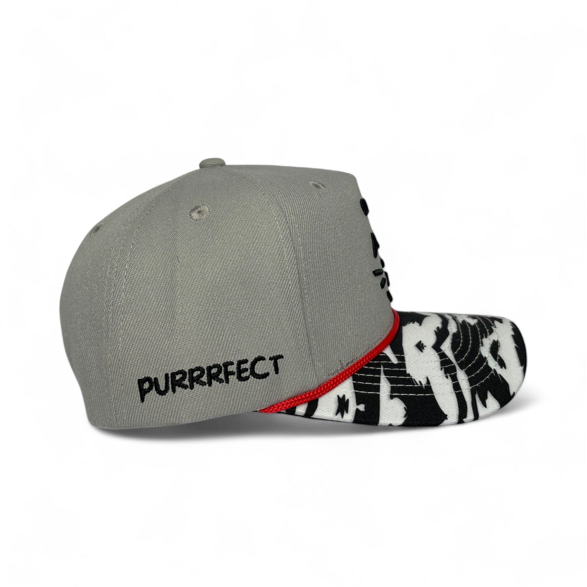 PURRRFECT” embroidery on the side — a confident affirmation of self-worth.