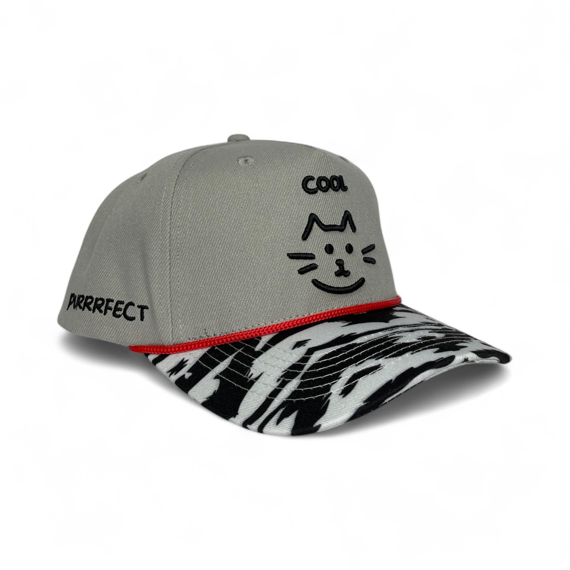 Tabby-print curved brim with red rope trim accent